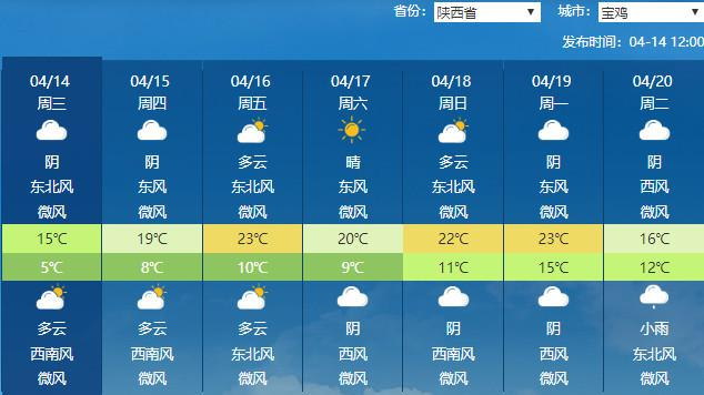 19日:陕北阴天间多云,关中、陕南阴天,其中关中西部、陕南大部有小雨。