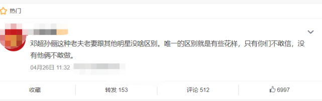 除此以外,还有大V在社交平台上称,孙俪这样的老夫老妻更其他明星还是有区别的,只有不敢信,没有他们做不到的,疑似暗示孙俪已经多次容忍邓超出轨的行为,然而邓超却依然没有回头醒悟的想法。