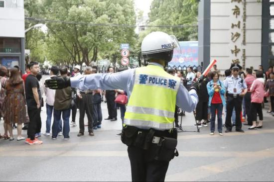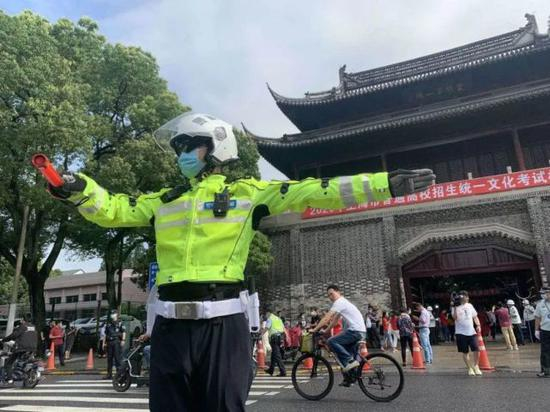 黄浦交警提醒广大驾驶员:途经考场周边道路时要减速慢行,不鸣号,遇送考生车辆应主动让行,为考生营造安全安静、畅通有序的考试环境。