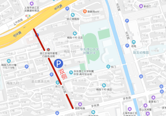 3、隆平路上师大二附中后门:禁止机动车沿隆平路向东行驶。