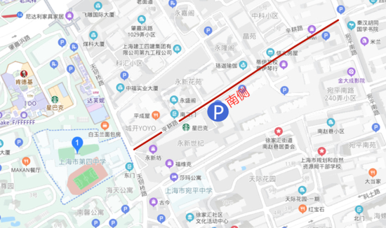 临时停车点:康平路北侧(高安-吴兴)、吴兴路东侧(康平-淮海)