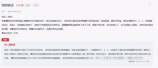 经核实现回复如下: 三棉福利村1、2、3、4号楼为三棉纺正街两侧棚改项目的一期拆迁项目,5号楼为二期拆迁项目。灞桥投资控股集团目前正在积极与区城棚改中心联系推进二期(即5号楼)的拆迁设计、规划等手续办理。