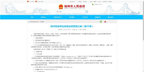 第43号公告(部分) 扬州市人民政府官网截图