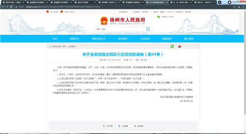 第44号通告 扬州市人民政府截图