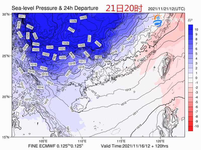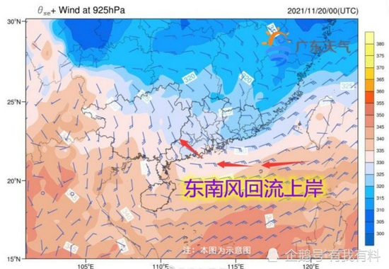 当然,在较强冷空气还没抵达广东之前,随着高空槽逐渐过境,广东省大部分市县的天气状况转好,以晴到多云天气为主,昼夜温差大,晚上气温低,白天气温回升,云量减少,并且在中午太阳辐射下,部分市县犹如夏日回归,最高气温在28℃左右,给人的体感比较闷热。到了11月21日晚上之后,新一股强冷空气携雨来袭,广东大部分市县的气温开始大幅下降。