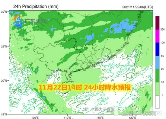 在降温过程中,受强冷空气锋前的冷暖空气交汇影响,预计在11月22日~11月23日的时候,广东大部分市县的天气开始多云转阴并伴有小雨,其中粤北地区北风风力较大,有中雨到小雨,降温幅度在7℃~10℃,其余市县以阴冷为主,北风加大,气温骤降,降温幅度在5℃~7℃,降温过后实际体感可能会比上旬寒潮更冷。