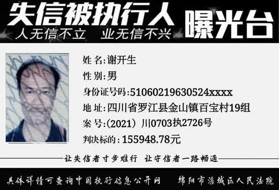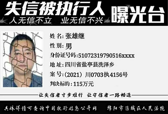 快看!绵阳最新一批“老赖”曝光!附头像、住址、身份证…