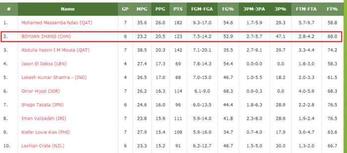 张博源赛后和古德曼(新西兰)、拉奇兰(新西兰)、亨利·斯维尔(澳大利亚)、亚拉斯(菲律宾)一起入选了最佳阵容。