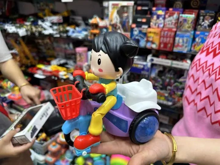 一名运动员一眼相中了一个车车玩具。