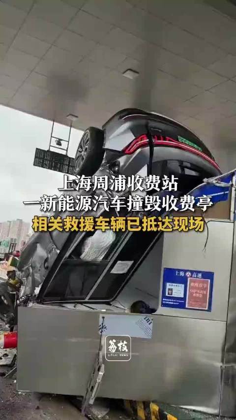 上海周浦收费站一新能源汽车撞毁收费亭 相关救援车辆已抵达现场