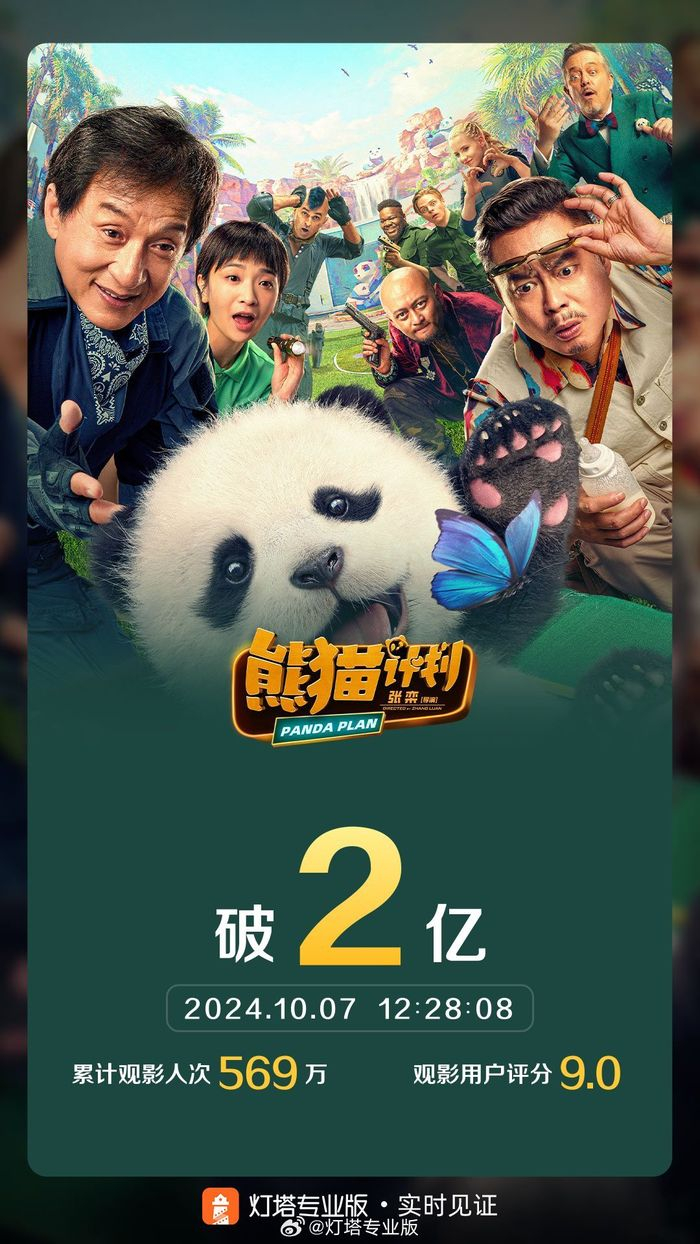 据灯塔专业版实时数据,截至10月7日12时28分,影片《熊猫计划》票房突破2亿。
