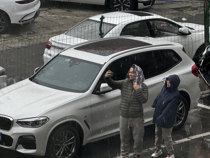 3月15日下午4时许,北四环小营西路,天空忽然飘起鹅毛般的雪花,这场久违的降雪让市民兴奋不已,纷纷走出家门与雪花亲密接触↓