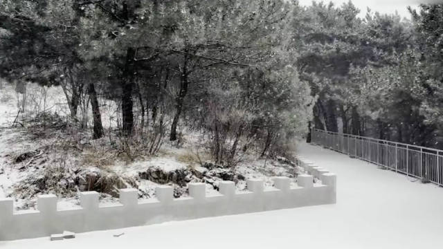 北京北部多地飘雪:路面树冠覆上“白纱” 外国游客登长城赏雪