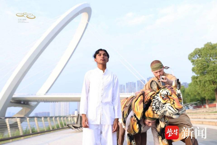 在演出前期,少年派和老虎“理查德·帕克”还来到了南京地标性建筑南京眼,在江边举行了一场快闪活动。南京眼的市民、游客纷纷被这只有呼吸、有思考、有动机的虎偶吸引、驻足,一声声虎啸更是吸引了好奇的小朋友。
