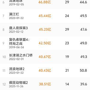 《疯狂动物城2》进入中国影史票房榜前12 界面新闻 界面新闻官方账号 2025.12.2515:13 关注 据灯塔专业版,截至12月25日15时03分,《疯狂动物城2》累计票房38.51亿元,超过《孤注一掷》,进入中国影史票房榜TOP12。