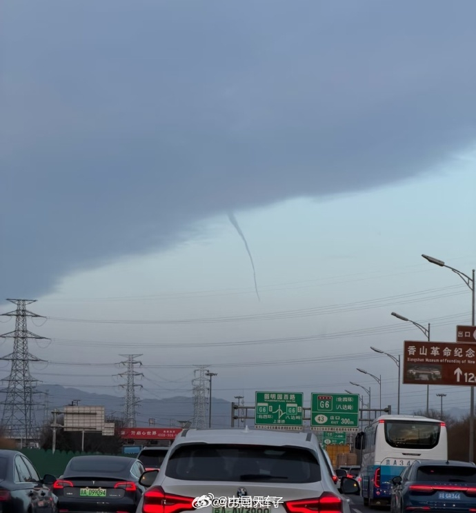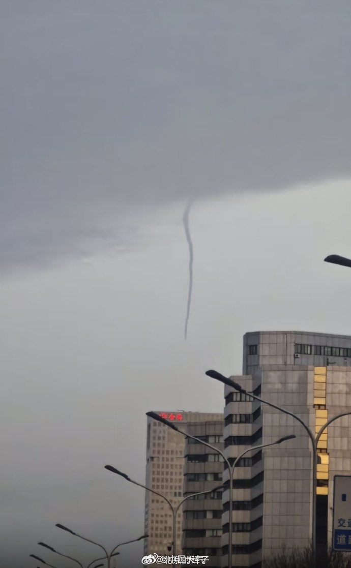 [#北京出现疑似龙卷风#? 是漏斗云]不少网友今天早上拍到北京西边方向天空有疑似“龙卷风”,这到底是啥?@中国天气 首席气象分析师信欣@weatherman_信欣 表示,这可能是云里有些垂直切变形成的漏斗云,不过没接地,应该不算龙卷。