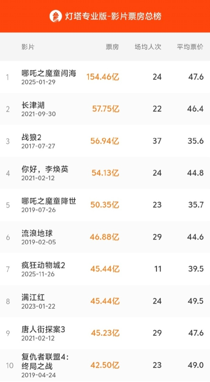 超过《满江红》,《疯狂动物城2》进入影史票房榜前七 界面新闻 界面新闻官方账号 02.1413:59 关注 据灯塔专业版,截至2月14日,《疯狂动物城2》累计票房45.44亿,超过《满江红》,进入中国影史票房榜TOP7。