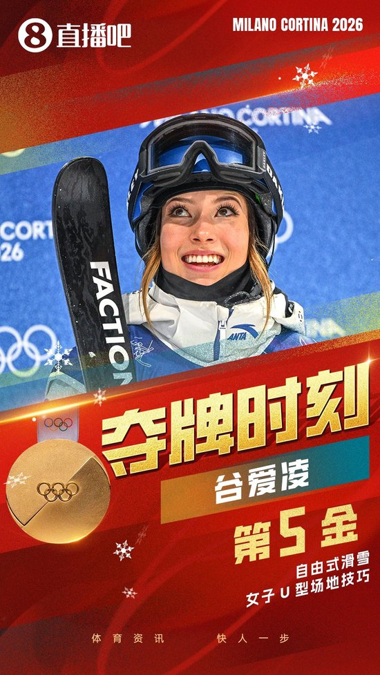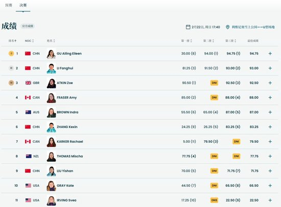 直播吧02月22日讯 米兰-科尔蒂纳冬奥会,自由式滑雪女子U型场地技巧决赛,谷爱凌94.75分卫冕夺金,李方慧93.00分摘银!