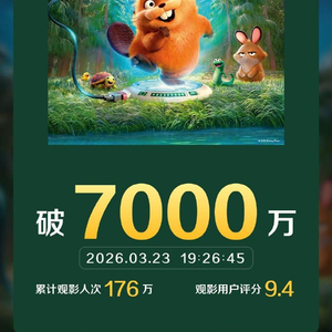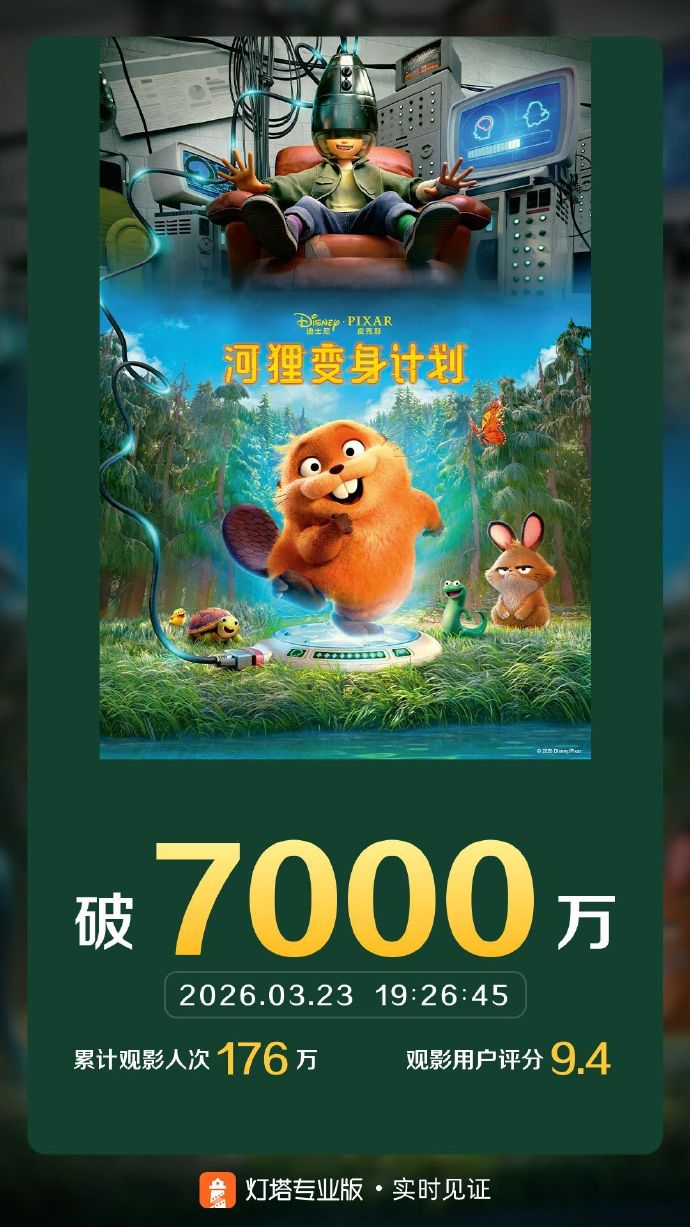 据猫眼专业版数据,电影《河狸变身计划》上映4天 ,截至3月23日19点26分,总票房破7000万。 ​​​