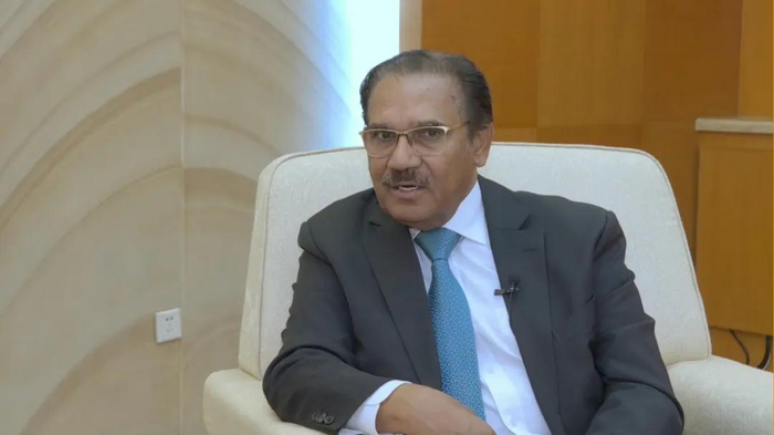 深圳卫视直新闻记者采访巴基斯坦总理中国事务特别代表扎法尔。