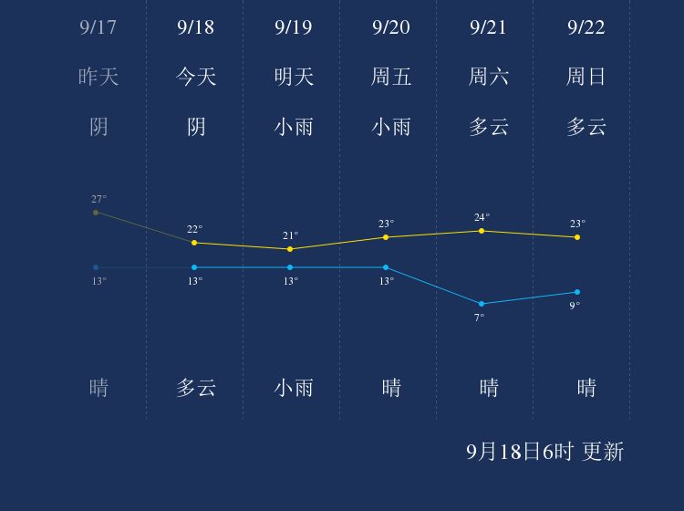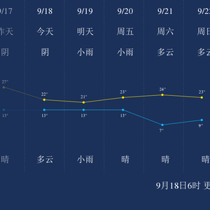 中国天气网讯 今天是9月18日星期三,一起来看天气。