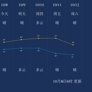 预计,今天白天晴,最高气温18℃,北风5-6级,今天夜间晴,最低气温13℃,西南风4-5级。