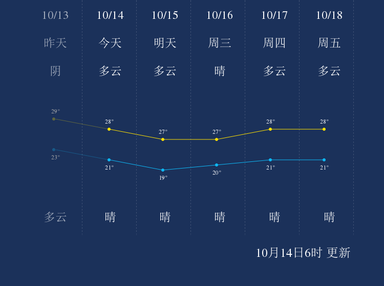 中国天气网讯 今天是10月14日星期一,一起来看天气。