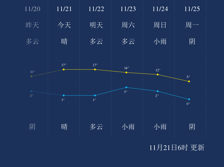 中国天气网讯 今天是11月21日星期四,一起来看天气。
