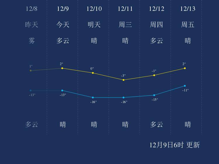 中国天气网讯 今天是12月9日星期一,一起来看天气。