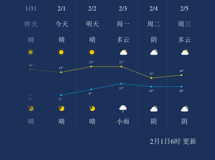 中国天气网讯 今天是2月1日星期六,一起来看天气。