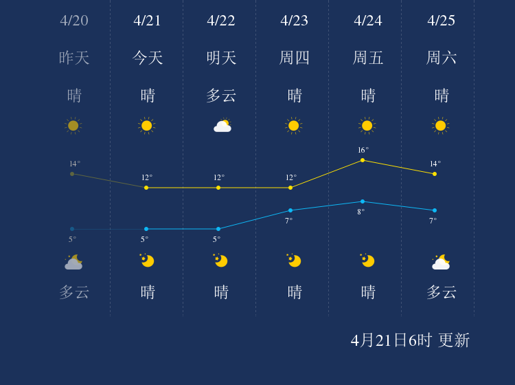 中国天气网讯 今天是4月21日星期二,一起来看天气。