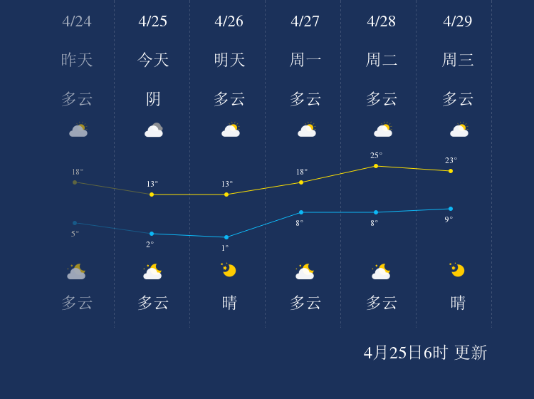 中国天气网讯 今天是4月25日星期六,一起来看天气。