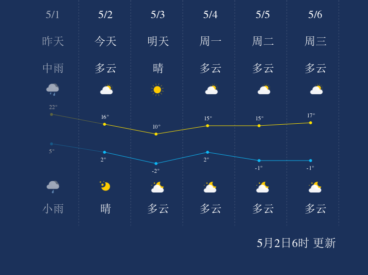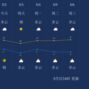 中国天气网讯 今天是5月2日星期六,一起来看天气。