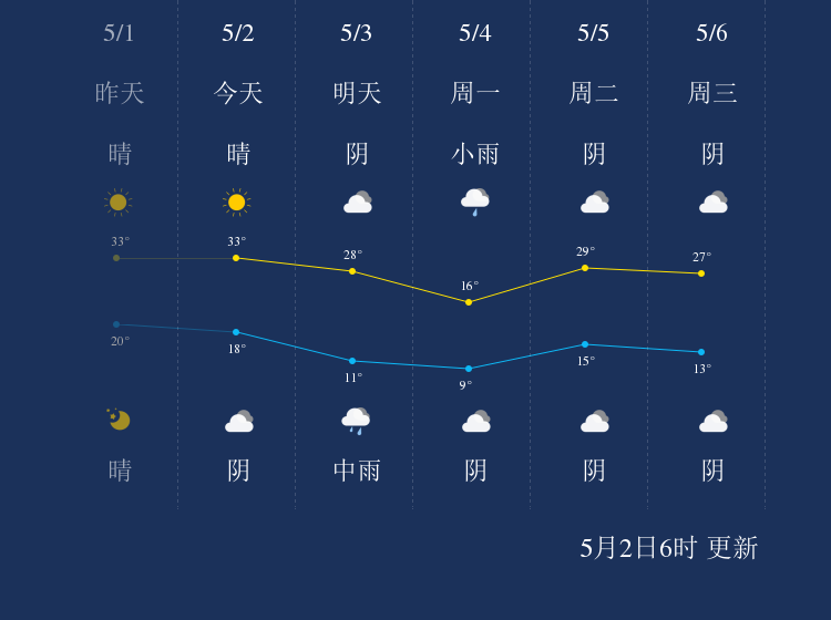 中国天气网讯 今天是5月2日星期六,一起来看天气。