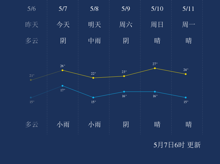 中国天气网讯 今天是5月7日星期四,一起来看天气。