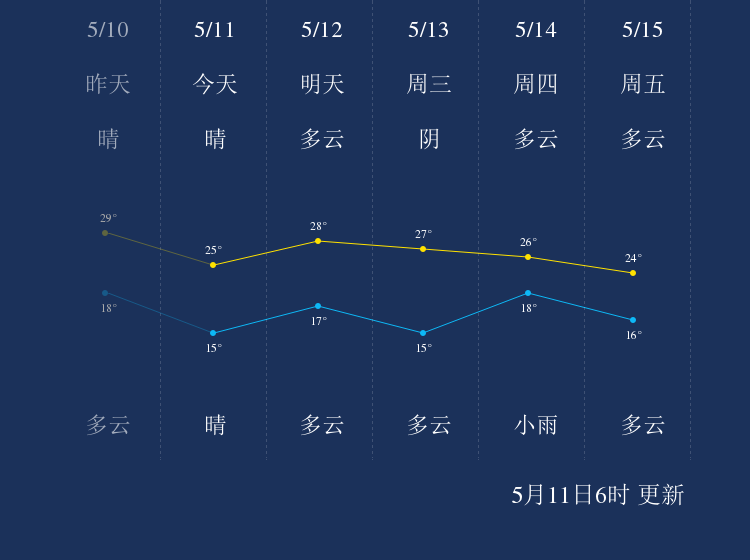 中国天气网讯 今天是5月11日星期一,一起来看天气。