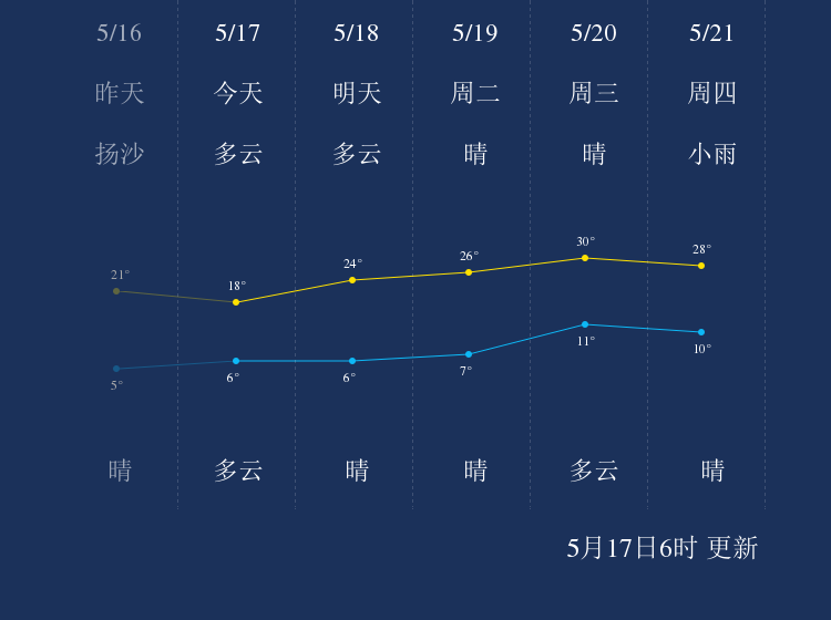 中国天气网讯 今天是5月17日星期日,一起来看天气。