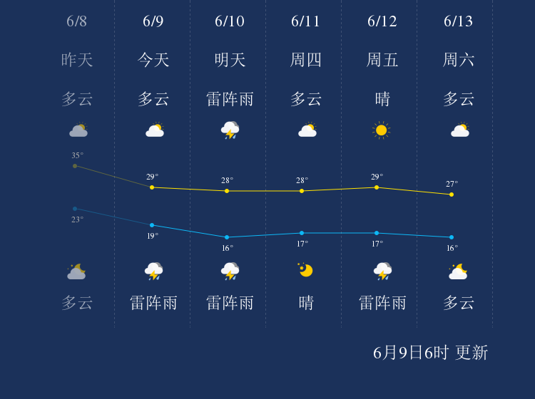 中国天气网讯 今天是6月9日星期二,一起来看天气。