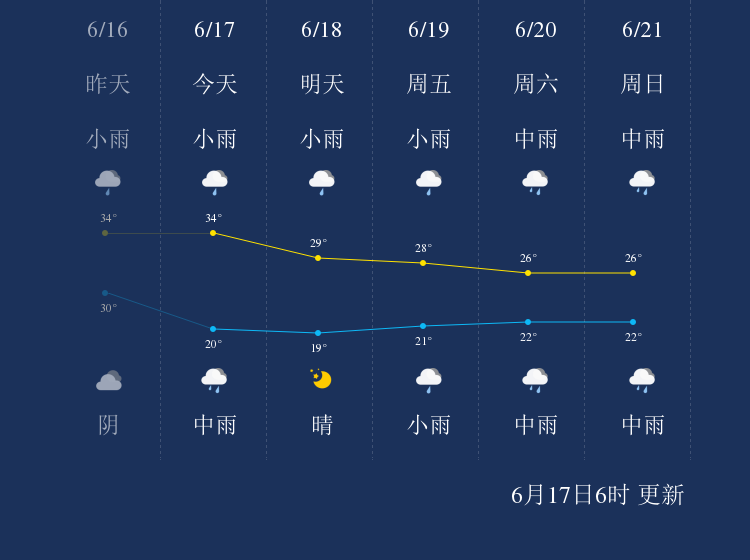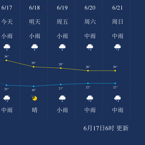 中国天气网讯 今天是6月17日星期三,一起来看天气。