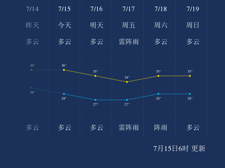 中国天气网讯 今天是7月15日星期三,一起来看天气。
