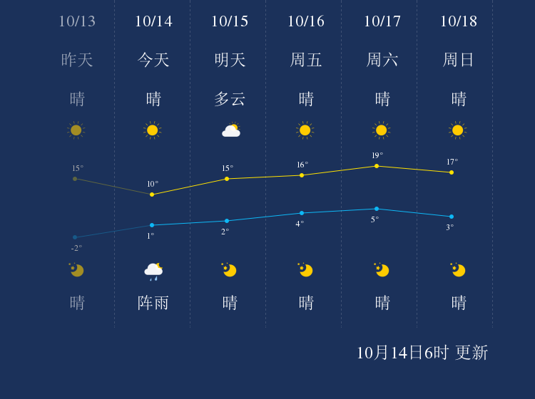中国天气网讯 今天是10月14日星期三,一起来看天气。