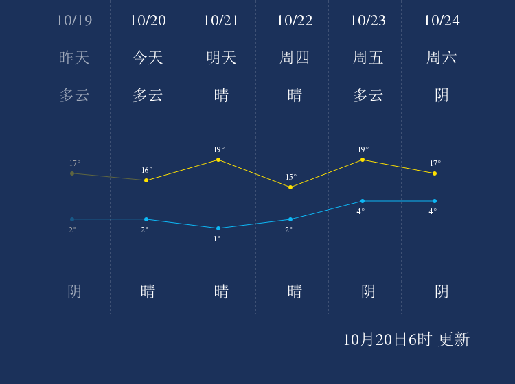 中国天气网讯 今天是10月20日星期二,一起来看天气。