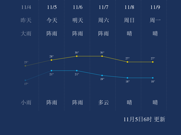 中国天气网讯 今天是11月6日星期五,一起来看天气。