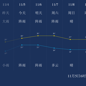 - 降水提醒:预计今天有阵雨转多云、明天有多云转阵雨。出门记得带伞并注意交通安全。