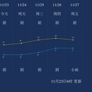 中国天气网讯 今天是11月23日星期一,一起来看天气。