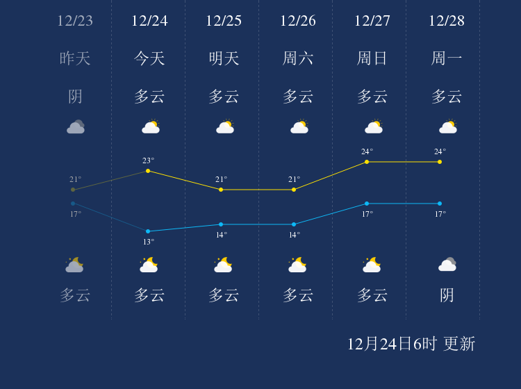 中国天气网讯 今天是12月24日星期四,一起来看天气。