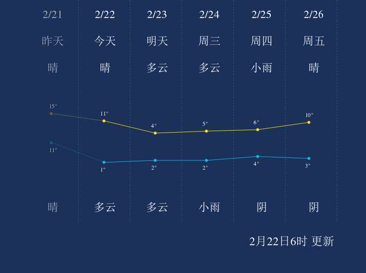 中国天气网讯 今天是2月22日星期一,一起来看天气。