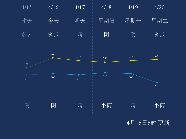 中国天气网讯 今天是4月16日星期五,一起来看天气。