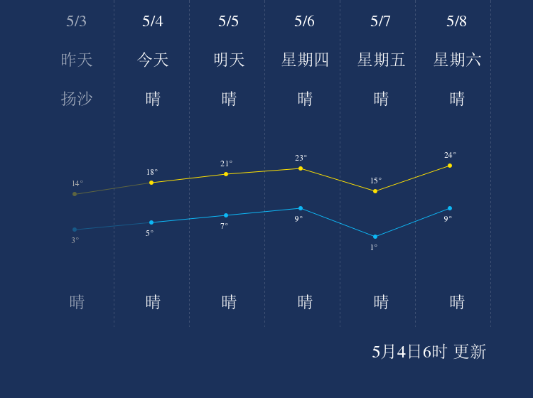 - 大风提醒:今天有4-5级大风、明天有5-6级大风。远离广告牌并小心高空坠物。