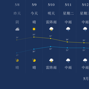 中国天气网讯 今天是5月9日星期日,一起来看天气。